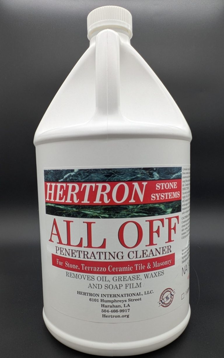 All Off is a solvent-based detergent that woks great at removing old wax, grease, oil, and soap film from all stone and tile surfaces. When used properly, this product will not etch stone.
