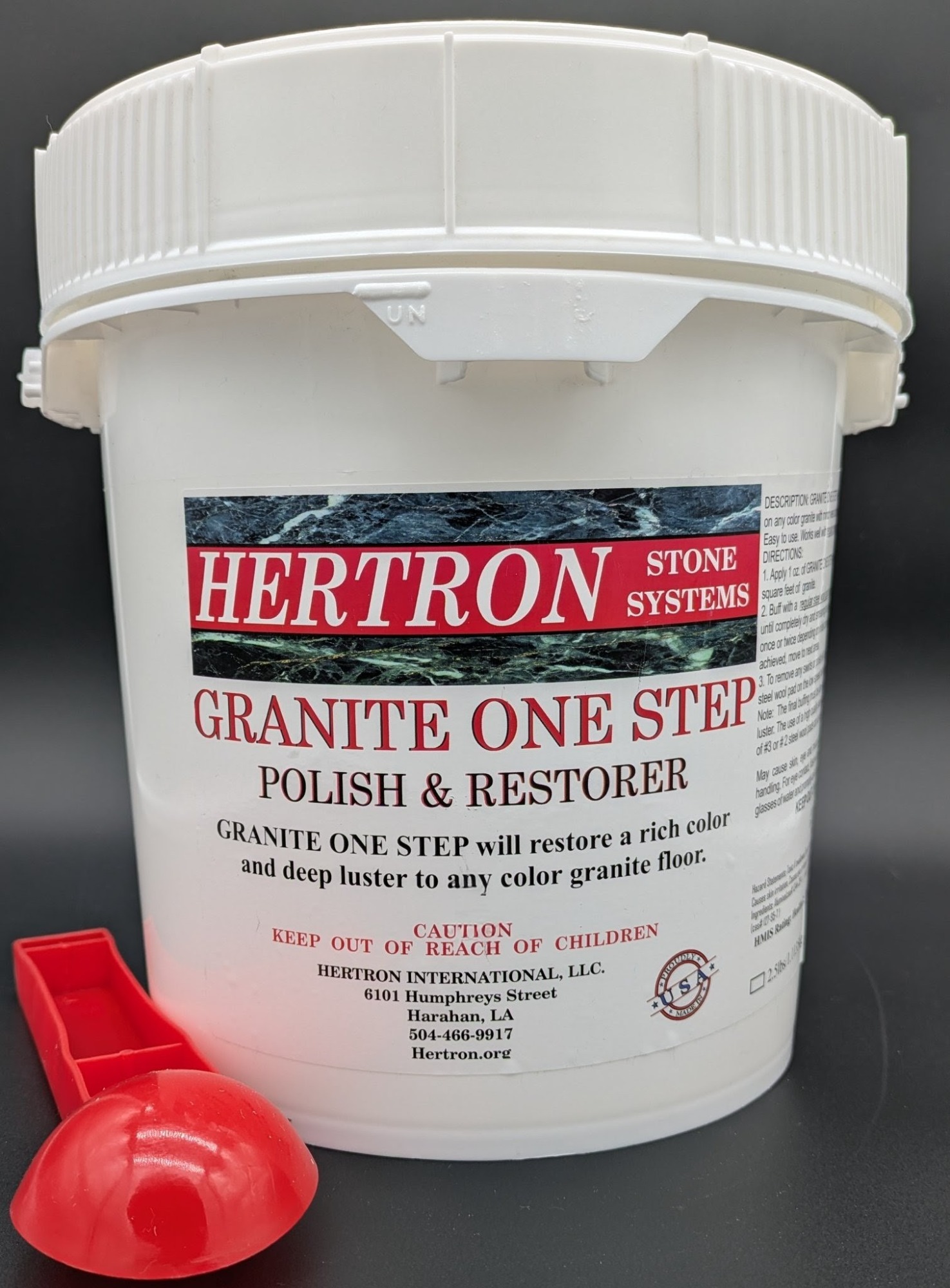 Granite One Step is a polishing compound that can be used to restore a rich color and deep luster to any color granite. Granite One Step is also used for maintenance of light traffic areas. It works well with regular steel wool pads.