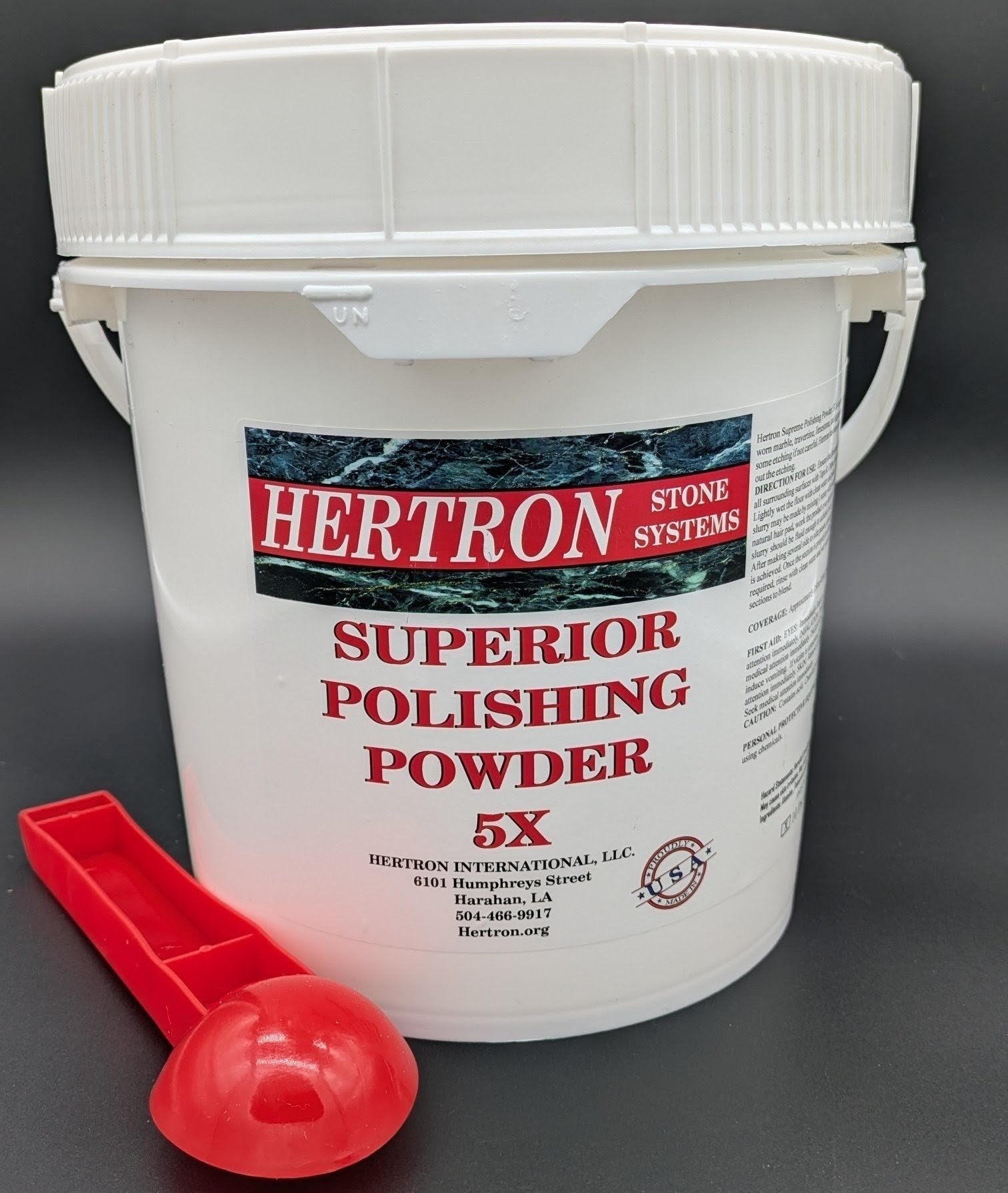 Superior Polishing Powder (5X) is used as the final polish for restoration of marble, travertine, limestone, and aggregates. Unlike most comparable polishes on the market, our 5X Polishing Powder maintains an aggresive polishing power without the etching.